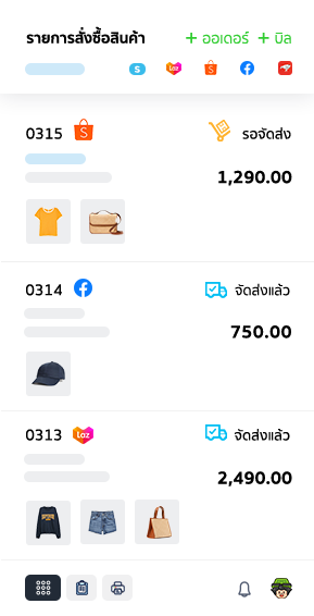 รายการจะถูกเพิ่มทันทีที่มีการสั่งซื้อ ไม่ว่าจะจากหน้าเว็บไซต์ หรือการเชื่อมต่อ Shopee Lazada ทุกรายการจะแสดงพร้อมกันในที่เดียว