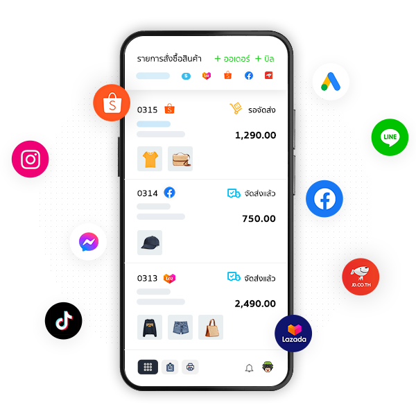 รับคำสั่งซื้อได้จากทุกช่องทางขายจาก Platform หรือสร้างรายการสั่งซื้อที่ได้รับจากลูกค้าผ่าน Social ก็ทำได้อย่างครบถ้วน ไม่ตกหล่น พร้อมสำหรับขั้นตอนชำระเงินและขนส่งถัดไปอย่างเป็นระบบ