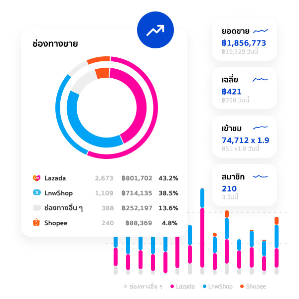 มองเห็นทั้งระนาบธุรกิจ ทุกขั้นตอน ไม่ว่าจะช่องทางที่ขายดี สินค้าที่ขาดสต็อก บัญชีค่าใช้จ่าย พัสดุค้างส่ง ลูกค้า Loyalty ที่สั่งซื้อประจำ