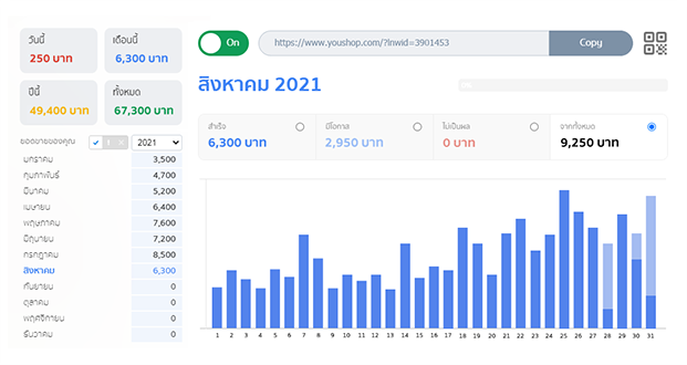 โปรโมตผลิตภัณฑ์และแบรนด์โดยผู้แนะนำผ่าน Link พร้อมกราฟผลลัพธ์ยอดขายแต่ละคน