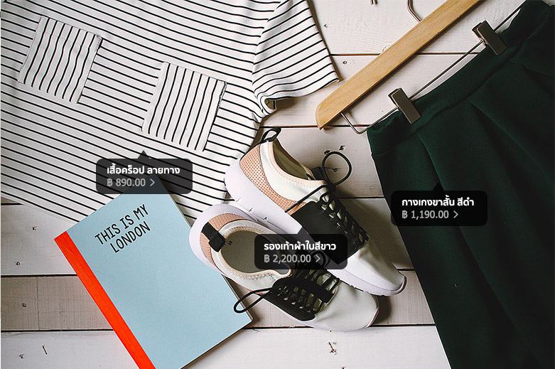 ลูกค้าจะเห็นได้ว่าของที่อยู่ในรูปภาพคือสินค้าชิ้นไหน ทำให้ลูกค้าคลิกไปดูสินค้านั้นได้ทันที โดยเฉพาะถ้าในรูปภาพมีสินค้าหลายชิ้น ด้วยวิธีนี้ลูกค้าก็จะเข้าใจได้ง่ายมากๆ