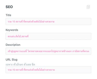 ช่วยให้ผู้ค้นหาได้เจอเว็บคุณอย่างรวดเร็ว เพียงใช้เครื่องมือในการจัดการ SEO ได้ทั้ง Title Tags , Meta Description ของทั้งเว็บไซต์หรือกำหนดรายชิ้นก็ได้