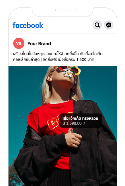 LnwShop Pro สามารถนำสินค้าของคุณทั้งหมดที่อยู่ในระบบขึ้นไปบน Facebook Page ได้ทันที พร้อม Sync ข้อมูลที่มีการเปลี่ยนแปลงไปยัง Facebook Catalog อัตโนมัติ โดยไม่จำเป็นต้องใส่ข้อมูลสินค้าแต่ละชิ้นด้วยตัวเอง ที่สำคัญลูกค้าสามารถกดสั่งซื้อได้บน Facebook และรายการสั่งซื้อนั้นจะปรากฎในระบบจัดการของคุณทันที