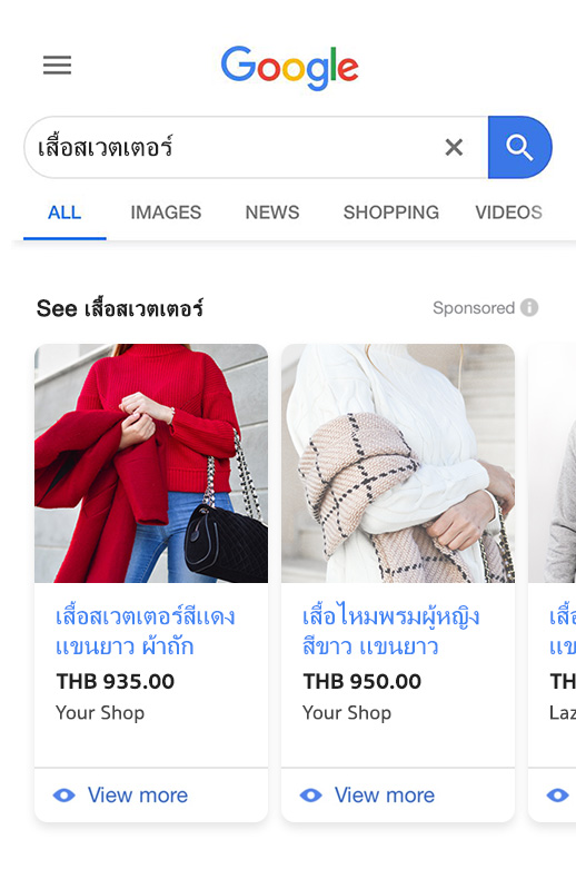 หลังได้รับการอนุมัติจาก Google สินค้าของคุณจะเริ่มโฆษณาให้ผู้ค้นหาเห็น